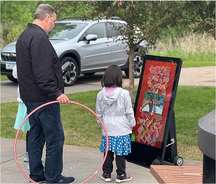 Interactive displays and digital sidewalk signs that invite participation